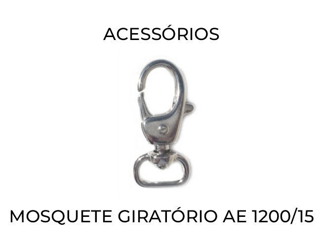 Opções em acessórios: Argola Chata, Mosquete Giratório AE 1200/15, AE 1039 e Mosquete Fixo AE 1039/1, AE 1039/2