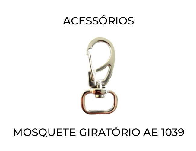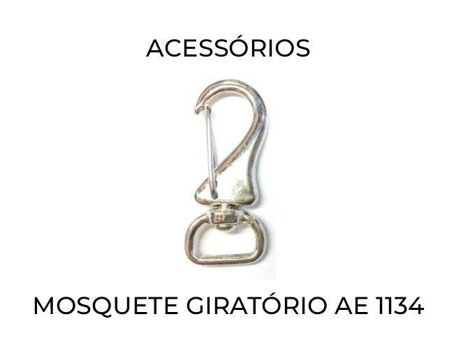 Opções em acessórios: Argola Chata, Mosquete Giratório AE 1200/15, AE 1039 e Mosquete Fixo AE 1039/1, AE 1039/2
