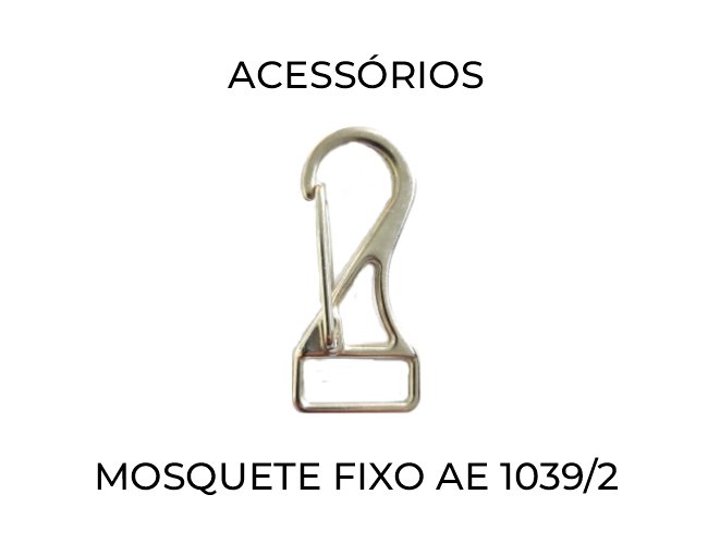 Opções em acessórios: Argola Chata, Mosquete Giratório AE 1200/15, AE 1039 e Mosquete Fixo AE 1039/1, AE 1039/2